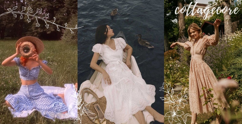 O visual Cottagecore é marcado por tecidos leves, cores suaves e detalhes delicados. Por exemplo, vestidos longos, mangas bufantes, estampas florais e babados são elementos-chave desse estilo. Além do mais, materiais naturais como algodão, linho e renda são amplamente utilizados.