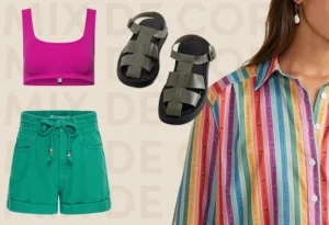 Por exemplo, uma calça branca com uma camisa multicolorida cria um visual moderno e leve. Enquanto isso, acessórios dourados ou prateados ajudam a harmonizar as cores. Além disso, o uso de tênis ou sandálias em tons pastel suaviza o look, tornando-o perfeito para o dia.